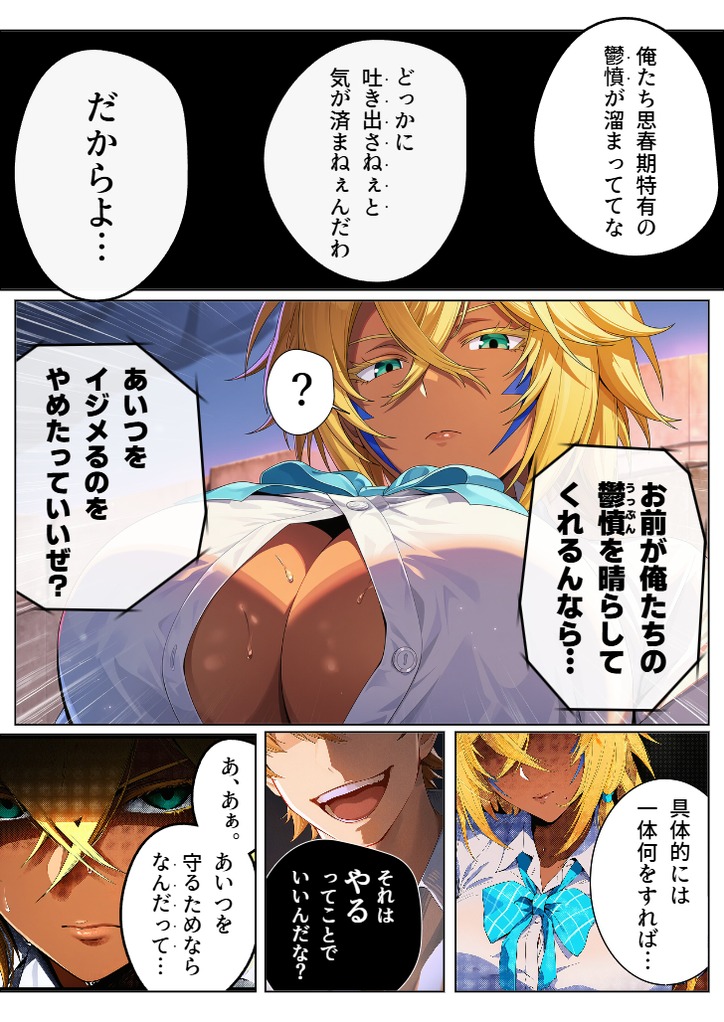 大好きな彼氏のいじめを止めるため、褐色彼女が不良たちに一人で交渉へ…。